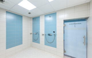 Ausstattung: Kinderwagenparkplatz, Wickelbereich, Fönstation, Fußbodenheizung in den Umkleiden, Wertschließfächer